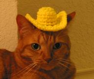 A few frends were over tonight to watch Six Feet Under and a couple of Arrested Development episodes. Steph had just gone to a knitting class, and brought a tiny little yellow knit hat that we all took turns wearing. Of course, we ended up putting it on Felix and taking a couple pictures.