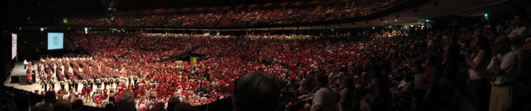 Katy and I got some last-minute tickets to the game and cheered our Buckeyes on to victory last Saturday night. Here's a panoramic picture of the skull session before the game, which reportedly had over 6000 people attending!